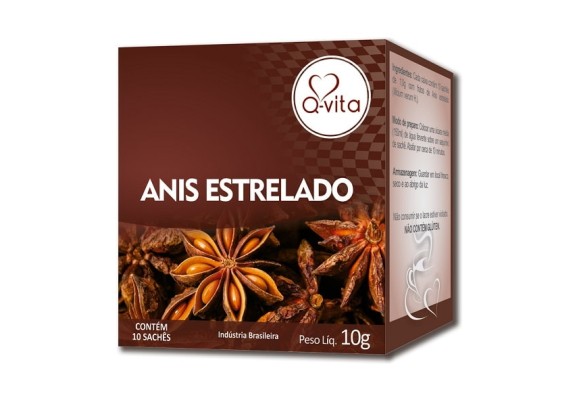 O chá de Anis Estrelado da Q-vita não acrescenta apenas mais sabor para os alimentos, e sim mais benefícios para a sua saúde. Esse chá é muito eficaz para efeitos em problemas digestivos diversos, sendo, aliás, unido à cura da gripe, uma das especialidades desta erva medicinal.