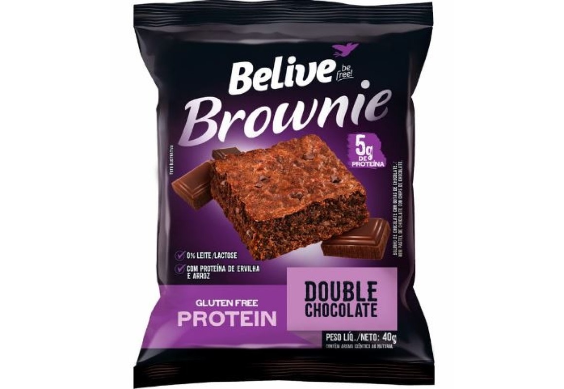 Alô, galera do esporte! Já pensou ter sua fonte de proteínas em um brownie também? É diferente e nós fizemos isso por você. Esse brownie proteico tem chocolate em dobro, uma massa macia e molhadinha, com gotas de chocolate amargo. Você vai se apaixonar por esse docinho que te salva na correria. Ele tem 5g de proteínas, é sem glúten e sem leite/lactose. Aproveite esse momento de alegria que é saborear um Brownie Proteico BeLive.