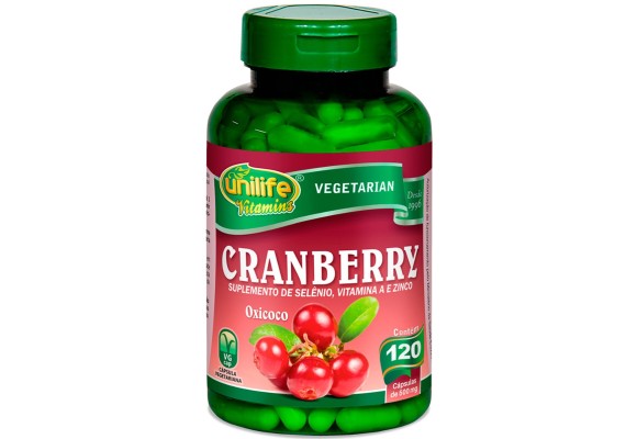 De origem nos países de clima mais frio, a cranberry contém grande quantidade de antioxidantes e vitamina C, reduzindo problemas degenerativos, como perda de memória e falta de coordenação, além de retardar o envelhecimento da pele. As propriedades terapêuticas protegem as células de possíveis danos causados por radicais livres. A Cranberry previne infecções urinárias e tem ação antioxidante.