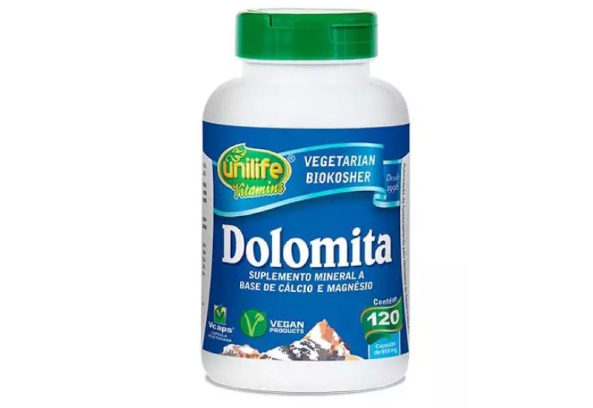 A dolomita é um mineral composto por carbonato de cálcio e magnésio. Ela é extraída de rochas de origem calcária, tem uma cor branca e lembra um pouco a argila. O suplemento de dolomita pode ser usado como terapia complementar contra a desmineralização óssea, cardiopatias, hipertensão, diabetes, distúrbios gastrointestinais, diarreias, câimbras, tendinites, dores musculares e articulares, fibromialgias, DORT (Distúrbios Osteomusculares Relacionados ao Trabalho), bursite, processos inflamatórios, baixa imunidade, TPM, cólica menstrual, insuficiência renal, espasmos brônquicos e queimaduras, entre outros.