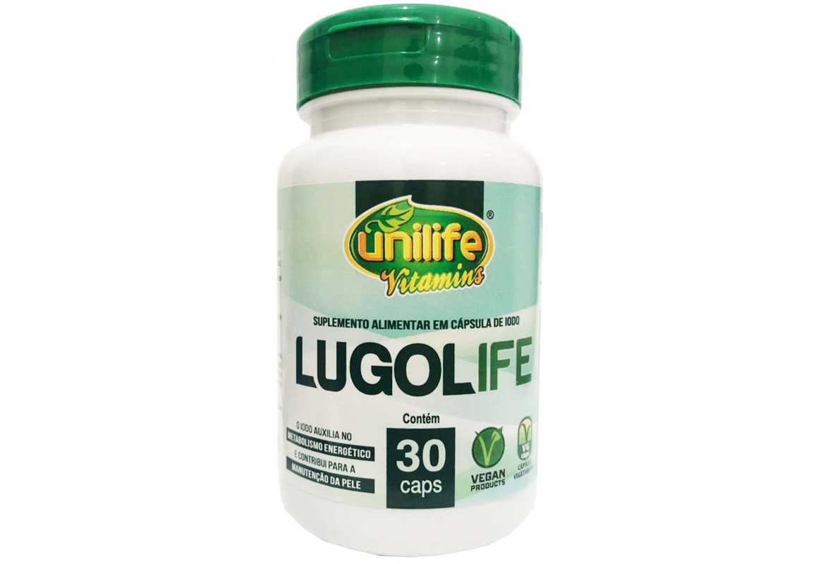 O Suplemento Alimentar em cápsula de Iodo - Lugolife pode ser usado para proteger contra a acumulação de iodo radioativo na tireoide, e ainda em casos de bronquite, asma brônquica e enfisema; atua como expectorante e antitussígeno. É também usado como tratamento adjuvante em cistite fibrosa e sinusite crônica. O iodo é um micronutriente essencial para o organismo e tem a função de participar da síntese dos hormônios produzidos pela tireóide. Sua deficiência pode levar ao hipotireiodismo, além de atrapalhar a termogênese processo de gasto de energia no nosso organismo. Apesar de ser extremamente importante as fontes de iodo em alimentos não são muito comuns, atualmente no Brasil nosso sal é iodado com o objetivo de reduzir as deficiências de iodo na população.