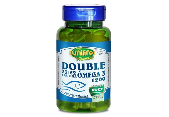 Ômega 3 óleo de peixe Double da Unilife é um suplemento a base de óleo de salmão. É um óleo saudável encontrado em fontes marinhas livre de metais pesados, com maior proporção de ácidos EPA e DHA. Ajuda no emagrecimento, auxilia no aumento do vigor e a facilita nas realizações dos exercícios físicos, tem uma grande queima de calorias, melhora a qualidade do sistema imunológico, possui propriedades anti-inflamatórias naturais que pode proporcionar ação anti-inflamatória de forma natural combatendo diversos aspectos preocupantes no organismo, até mesmo aliviando dores crônicas.