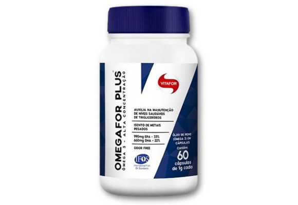 ÔmegaFor Plus 1000mg - Vitafor é um suplemento alimentar à base de óleo de peixe rico em ômega-3, um tipo de gordura essencial para a saúde. Este nutriente é encontrado em peixes de águas profundas, como o arenque, a truta, a cavalinha, salmão, atum e a sardinha.