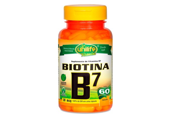 Vitamina B7 Biotina 500mg Unilife - 60 Cápsulas
